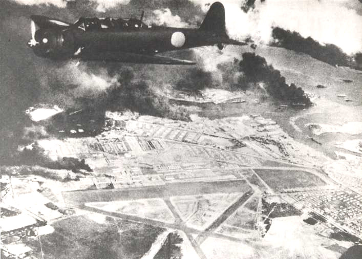 (真珠湾上空を飛ぶ日本戦闘機 出典:Wikipedia)