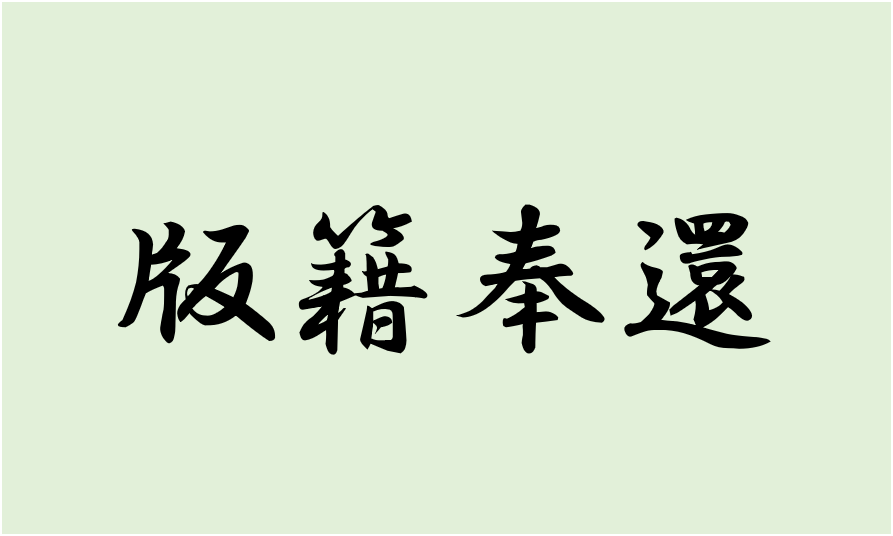 明治維新の一環として、1869年(明治2)7月25日に勅許され、全国の藩が所有していた土地(版)と人民(籍)を朝廷に返還した政治改革のことを、版籍奉還といいます。