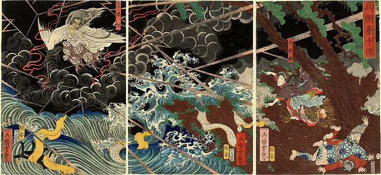 (讃岐で崩御し、怨霊になる瞬間を描いた画 出典:Wikipedia)